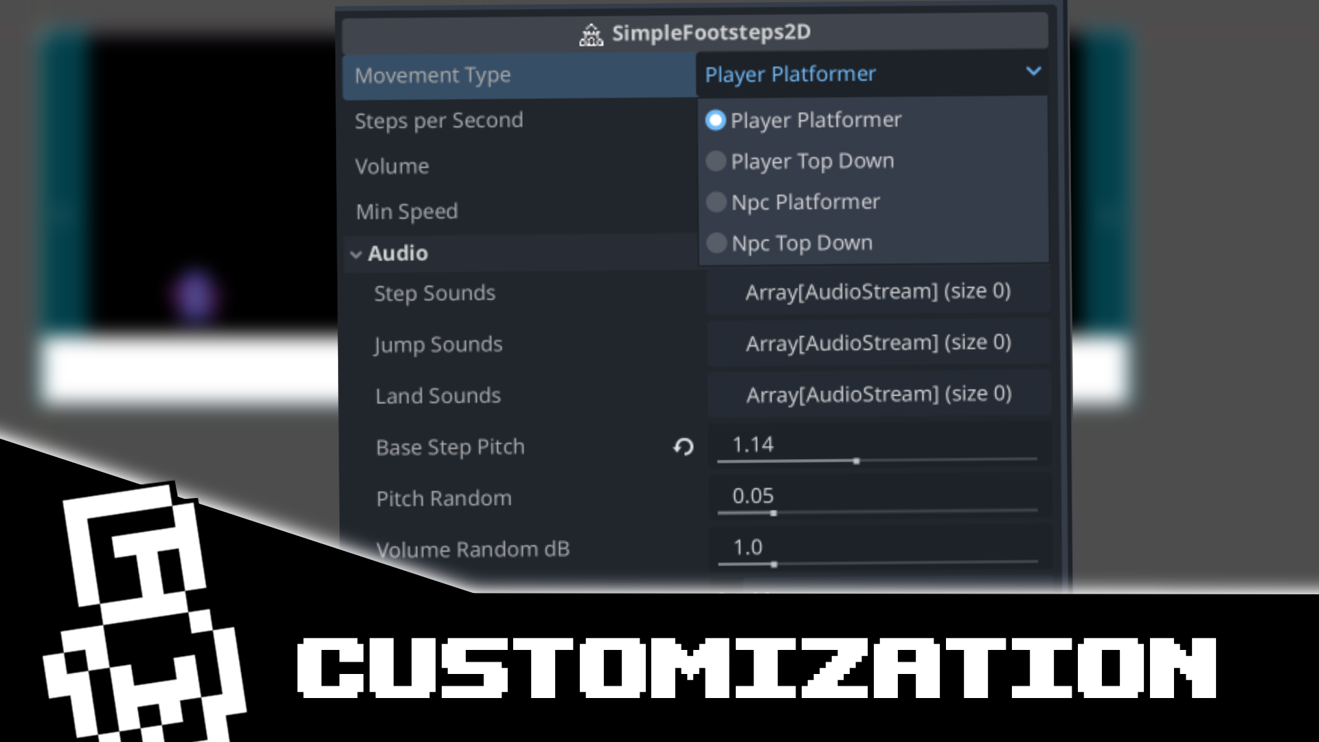 Simple Footsteps 2D is a lightweight, plug-and-play footsteps system for Godot 4 made for 2D games.